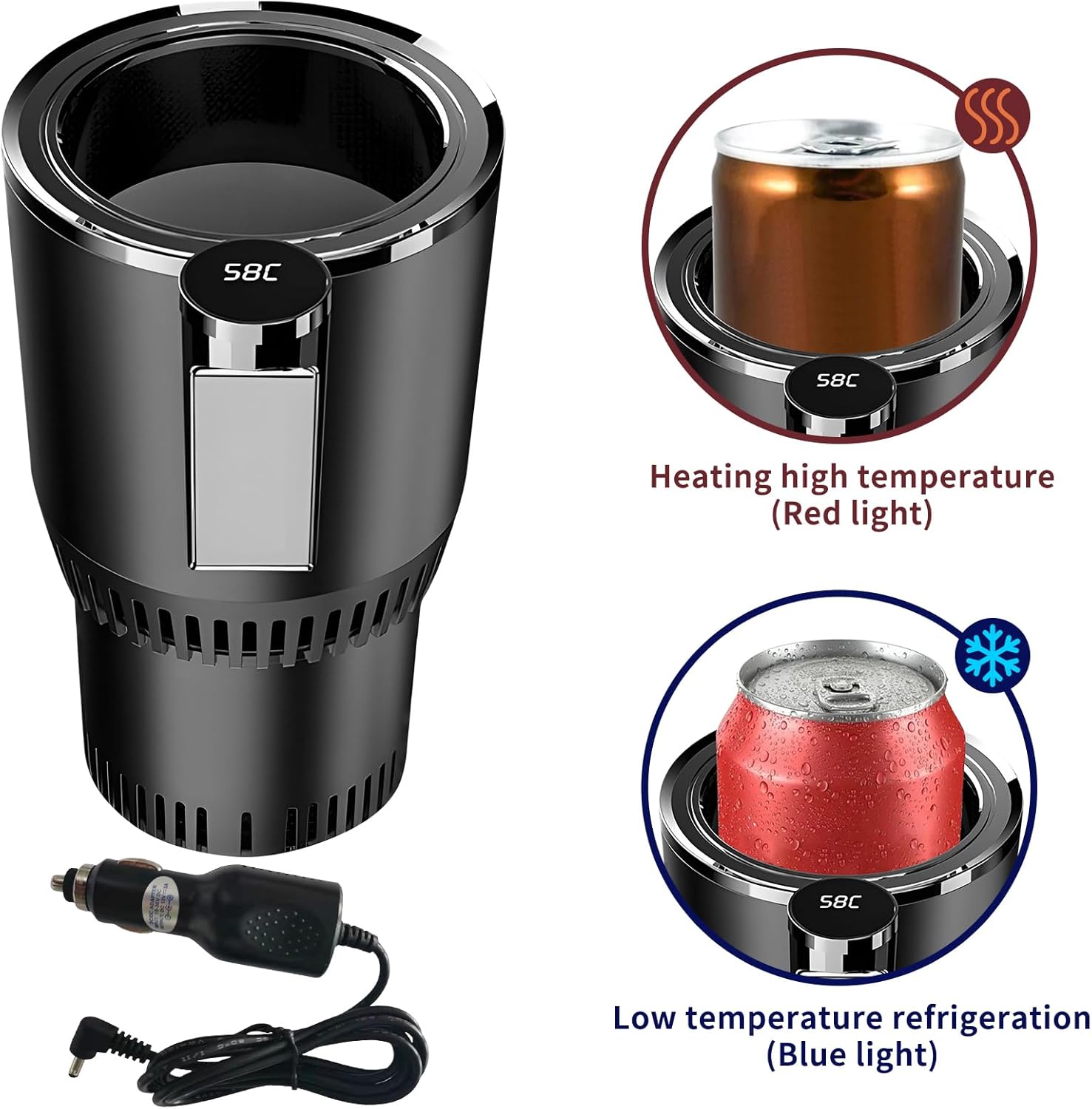 Keep your drinks at the perfect temperature with this 2-in-1 Smart Car Cup Cooler & Heater. Features LED temperature display and touch control for easy operation. Fits most car cup holders, ideal for commuters, road trips, and daily use. Enjoy cold beverages in summer and hot drinks in winter anytime while driving. Sleek and compact design for convenience. | حافظ على مشروباتك بدرجة الحرارة المثالية مع كوب ذكي 2 في 1 للسيارة للتبريد والتسخين. مزود بشاشة LED وتحكم باللمس لتشغيل سهل. يناسب معظم حوامل أكواب السيارات، مثالي للرحلات اليومية والسفر. استمتع بالمشروبات الباردة في الصيف والمشروبات الساخنة في الشتاء أثناء القيادة. تصميم أنيق ومدمج لسهولة الاستخدام.